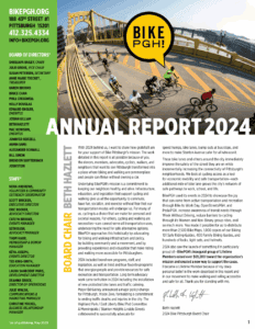 BikePGH is transforming our streets to make biking and walking commonplace for all Pittsburghers in order to improve our quality of life and reduce the harmful effects of car dependence in our communities.