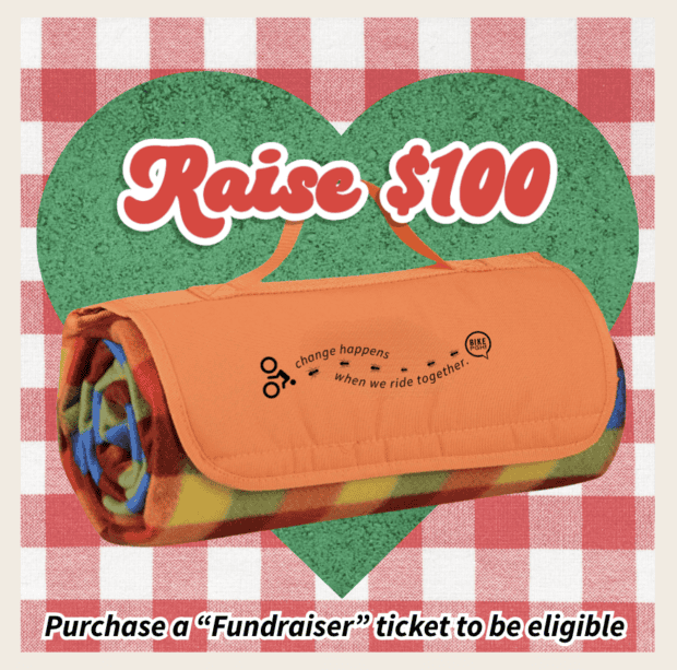 Go the extra mile for our mission and purchase a “Fundraiser” Ticket to be eligible to win this picnic blanket when you reach your $100 fundraising goal